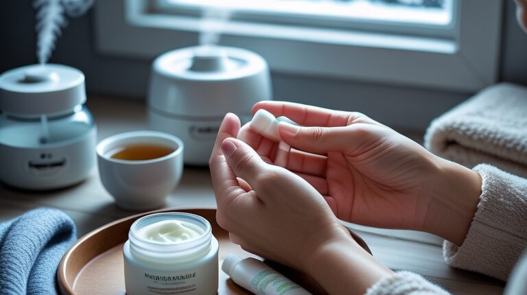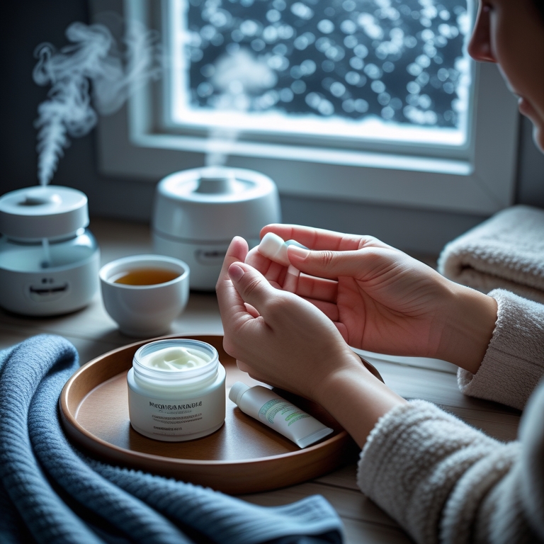 Oczyszczanie przeprowadź delikatnym preparatem bez silnych detergentów, aby nie naruszyć warstwy lipidowej. Po oczyszczeniu użyj bogatego kremu lub emulsji zawierającej ceramidy i kwas hialuronowy, który zapewni natychmiastowe i długotrwałe nawilżenie. Jeśli masz skórę reaktywną, włącz serum z niacynamidem lub preparat z pantenolem, które zmniejszają stan zapalny i stabilizują barierę. Na koniec nałóż szerokospektralny krem z filtrem SPF 30–50 około 30 minut przed wyjściem. Przy bardzo mroźnym, wietrznym dniu rozważ dodatkową warstwę kremu barierowego na najbardziej narażone obszary, takie jak skrzydełka nosa i policzki.